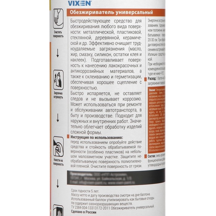 Обезжириватель универсальный VIXEN, аэрозоль, 520 мл VX-90003