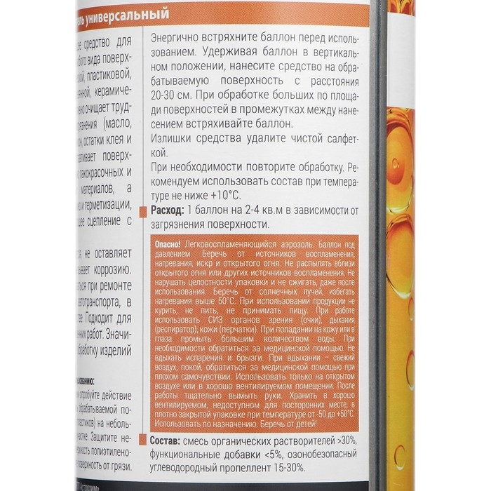 Универсальный обезжириватель VIXEN в виде аэрозоля объемом 520 мл предназначен для удаления жира, масла, грязи и других загрязнений с различных поверхностей. Идеально подходит для подготовки поверхностей перед нанесением лакокрасочных материалов, клеев, герметиков, грунтовок и других отделочных материалов. Может использоваться на металлических, пластиковых, стеклянных и деревянных поверхностях. Легко и быстро испаряется, не оставляя следов и не повреждая поверхности.