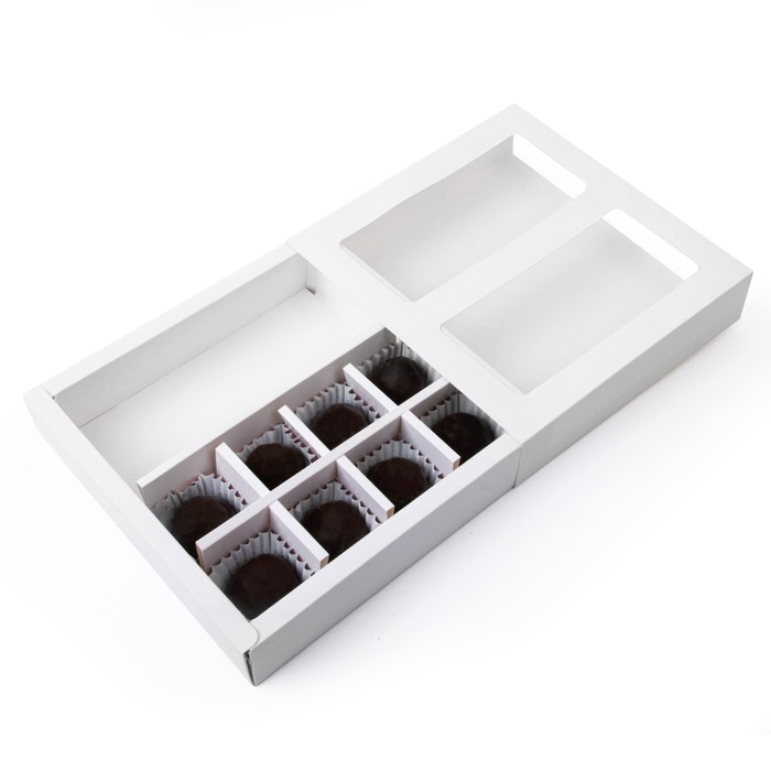 Коробка под 8 конфет + шоколад, с окном, белая, 17 х 5 х 17,5 х 3,7 см