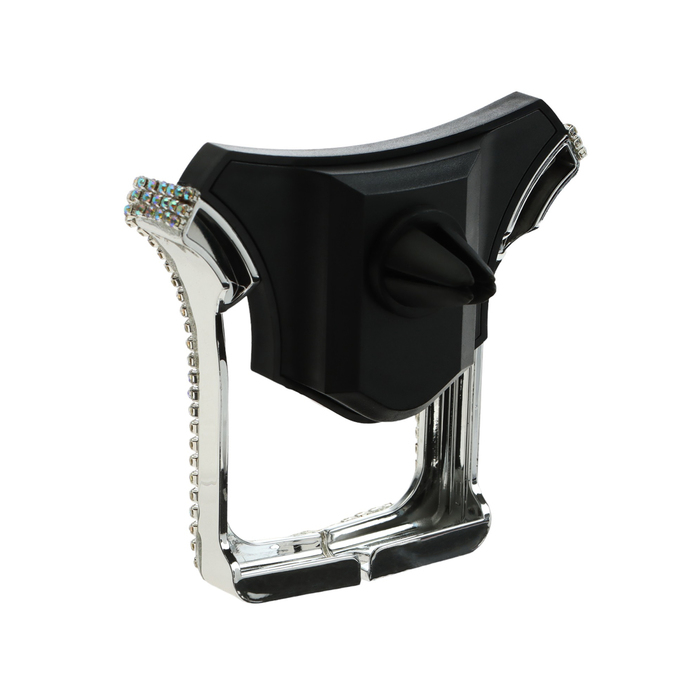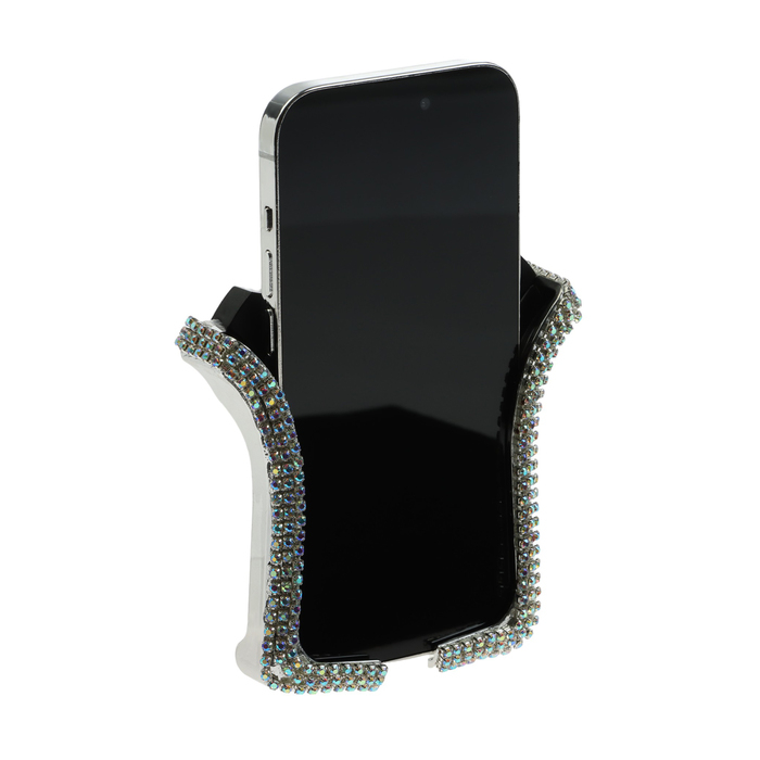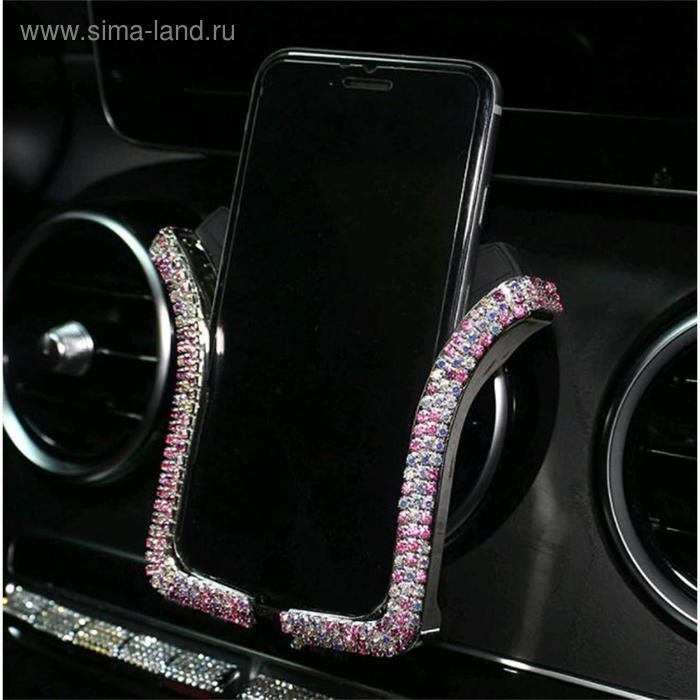 Держатель телефона со стразами, легко устанавливается на дефлектор воздуховода. Подходит на большинство моделей автомобилей. Мобильное устройство фиксируется в держателе путём зажима.