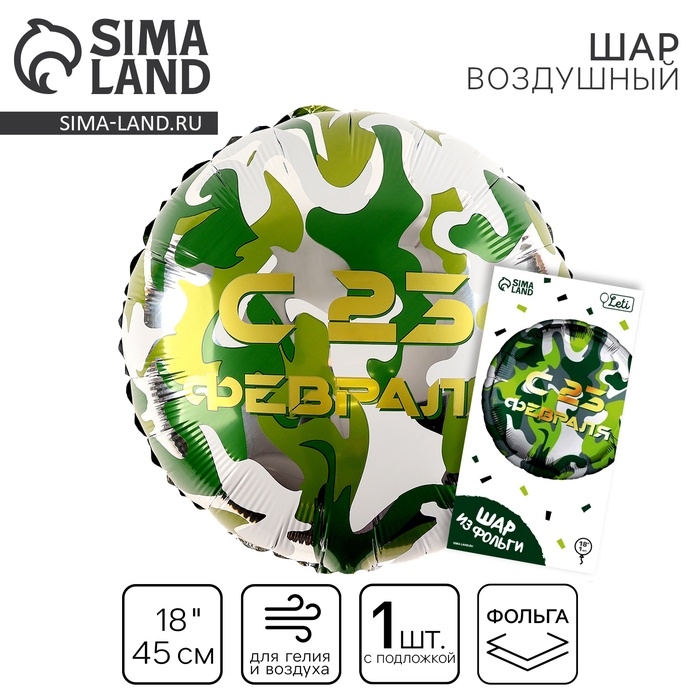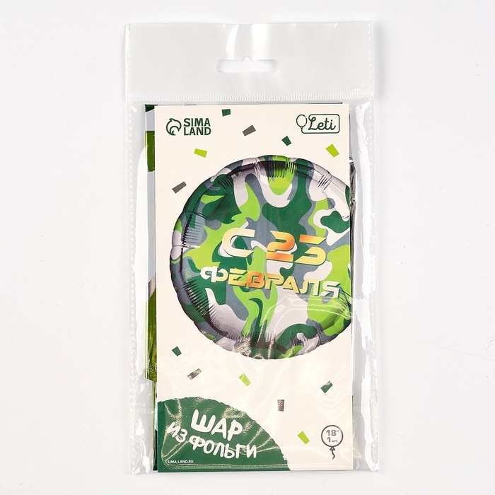 Воздушный шар фольгированный 18" «С 23 февраля» круг, с подложкой