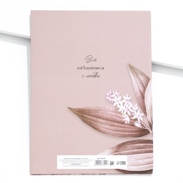 Папка для свидетельства о заключении брака «Всё начинается с любви», А4