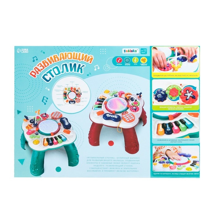 Развивающий столик создан специально для самых маленьких деток. Игрушка привлечёт внимание интересной конструкцией и надолго займёт малыша благодаря множеству полезных функций. Столик не только развлечёт ребёнка — с ним можно осваивать новые навыки!