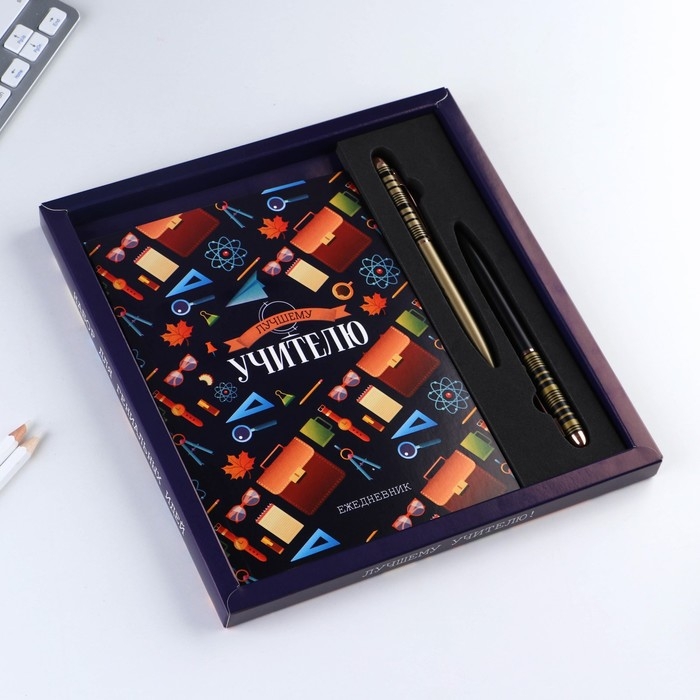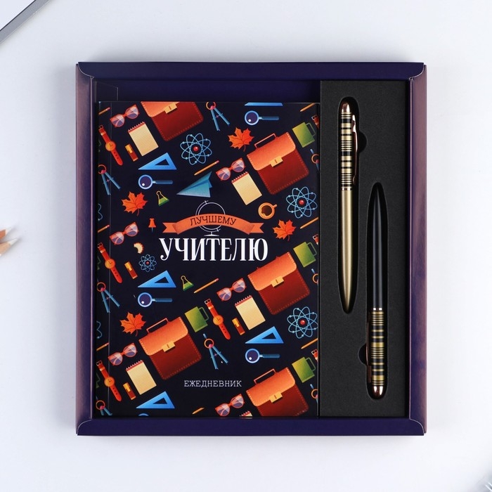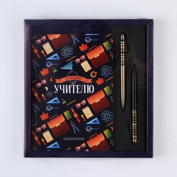 Подарочный набор «Учителю: УЧИТЕЛЬ» ежедневник и 2 шт ручки( шариковые, 1 мм, синяя,красная паста)