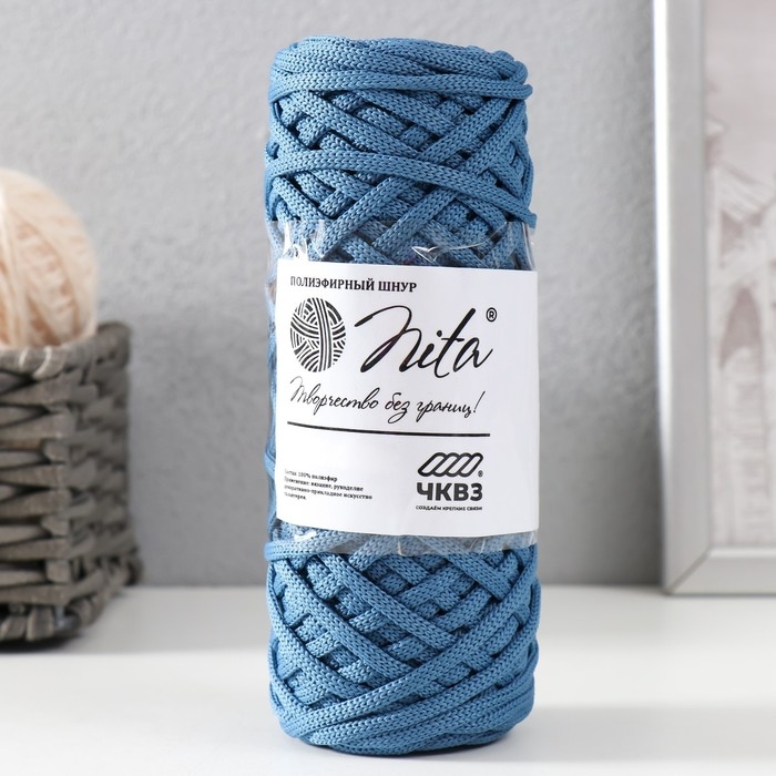 Шнур для вязания 100% полиэфир, ширина 4 мм 50м (джинс)