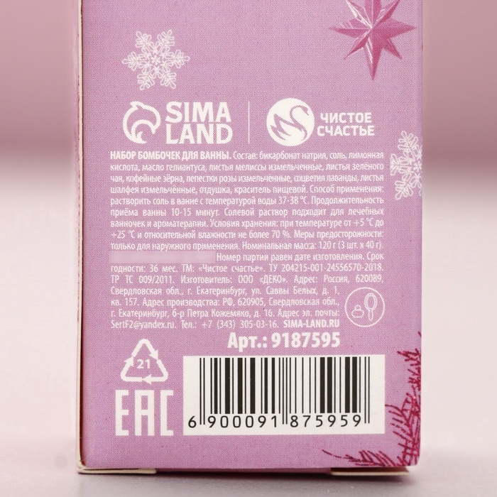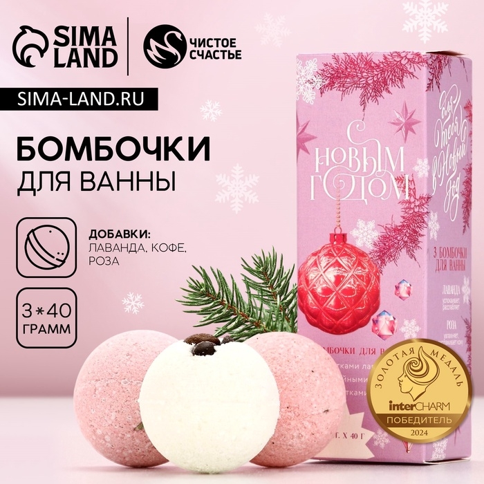 Набор бомбочки для ванны с добавками ЧИСТОЕ СЧАСТЬЕ «Для тебя», 3х40 г, Новый Год