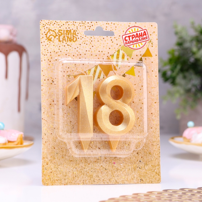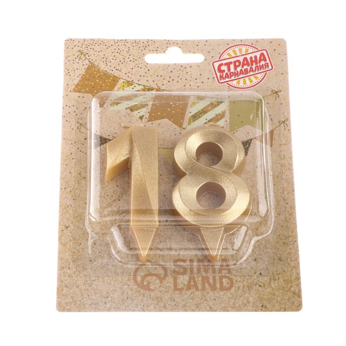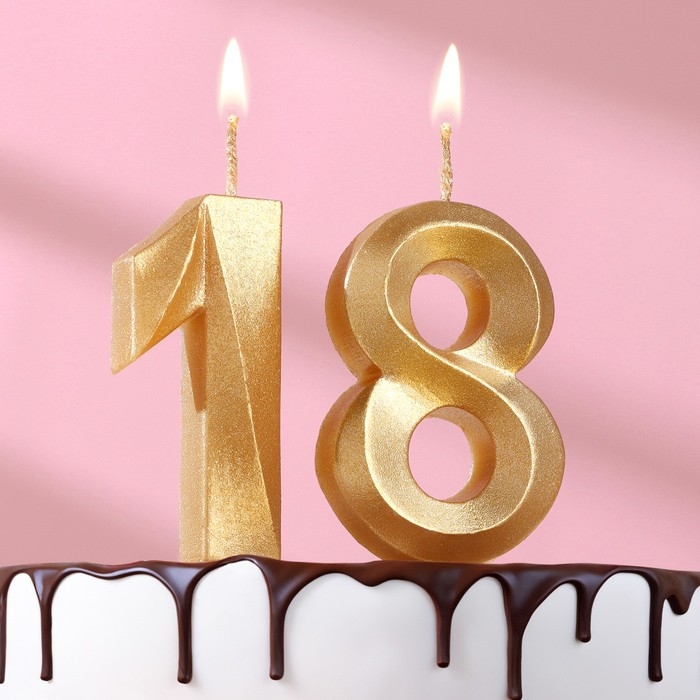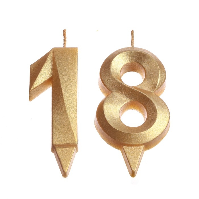 Свеча в торт юбилейная "Грань" (набор 2 в 1), цифра 18, цифра 81, золотой металлик, 6,5 см