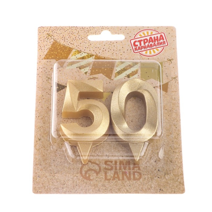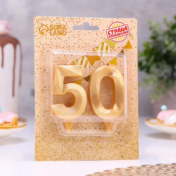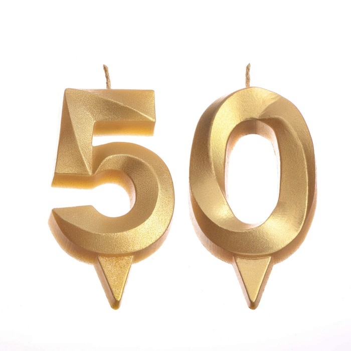 Свеча в торт юбилейная "Грань" (набор 2 в 1), цифра 50, золотой металлик, 6,5 см