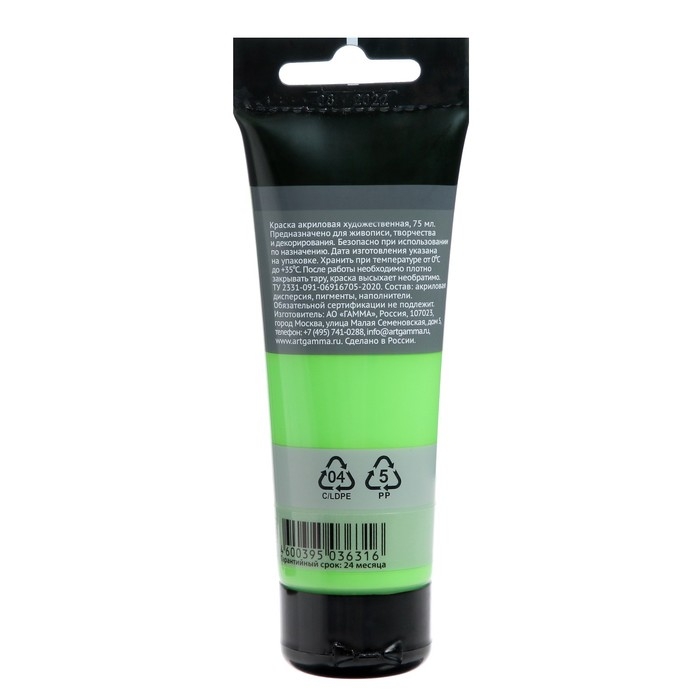 Новая акриловая краска серии «Студия» желто-зелёного цвета предназначена для художественно-живописных и декоративно-прикладных работ. Главные отличия: насыщенный цвет, густая консистенция, высокая адгезия, прочность красочного слоя. После высыхания краска становится глянцевой, практически не темнеет, специальная добавка позволяет максимально раскрыть красоту цвета. Художественный акрил прекрасно разносится, подходит для бумаги, картона, грунтованного холста, дерева, стекла, кожи, ткани. Время высыхания: от 10 минут до 1 часа в зависимости от толщины слоя. Прозрачный корпус тубы позволяет увидеть цвет краски, а удобная крышка флип-топ предотвращает высыхание. Объём тубы — 75 мл.