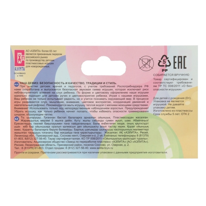 Товар изготовлен из прочного и безопасногоматериала, не содержащего бисфенола А. Рекомендовано для детей от 3 месяцев.