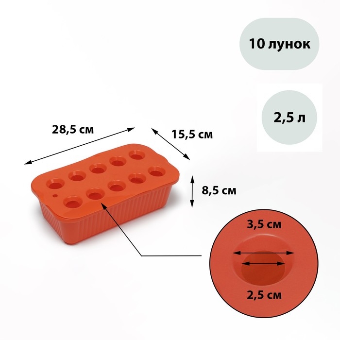 Ящик для выращивания зелёного лука, 29 × 16 × 8,5 см, 2,5 л, 10 лунок, пластик, оранжевый, Greengo