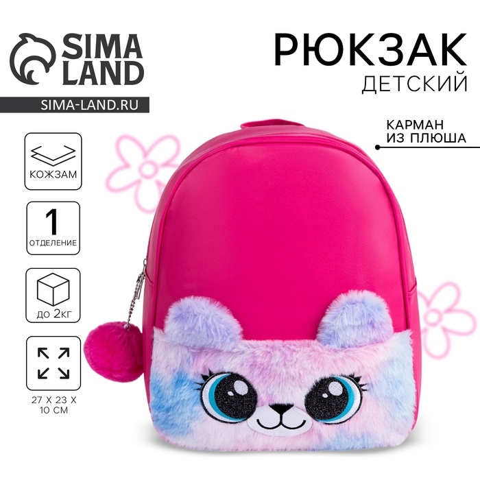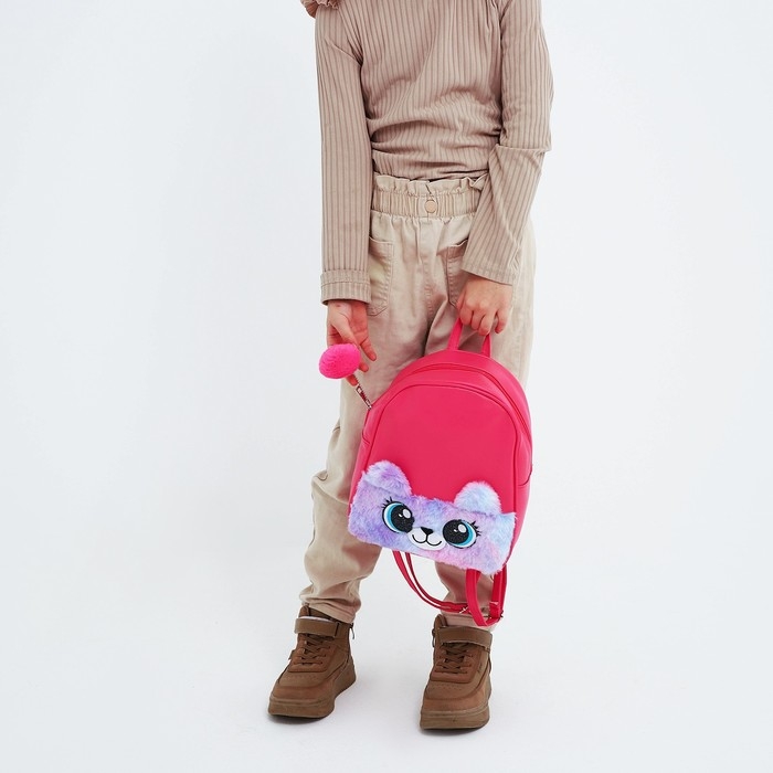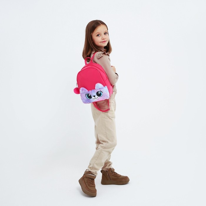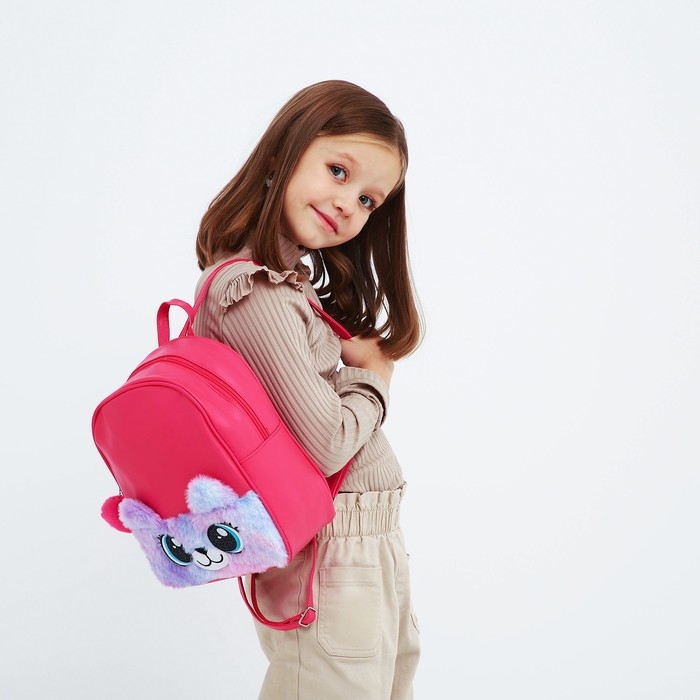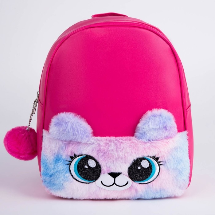 Рюкзак детский для девочки из искусственной кожи «Мишка», с карманом из плюша. 27х23 х 10 см