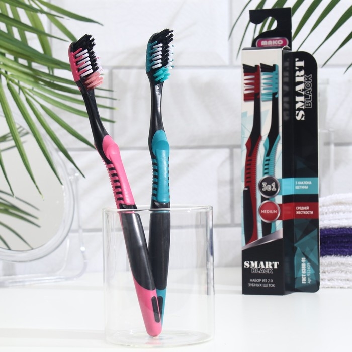 Зубная щётка «Смарт» Black средней жесткости, красный + зеленый, 2 шт.