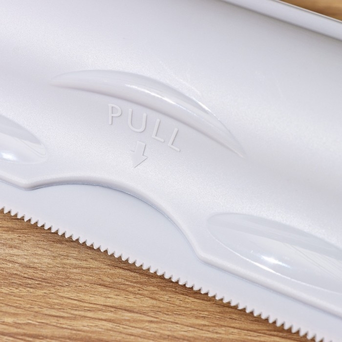 Футляр открывается и внутрь закладывается рулон фольги или пленки. Край фольги чуть вытягивается и после этого футляр закрывается и защелкивается. Придерживая край фольги одной рукой, нужно оттягивать футляр и она будет легко разматываться. После окончания работы фольгу легко оторвать благодаря краю с острыми зубчиками.