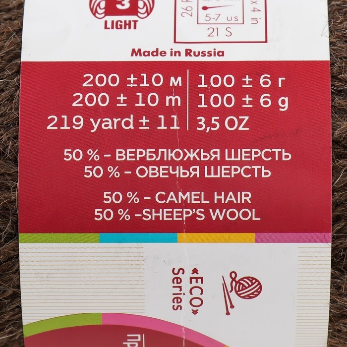Пряжа "Верблюжья шерсть" 50% вербл. шерсть,50% овечья шерсть 200м/100гр (372 Натур.т.серый)