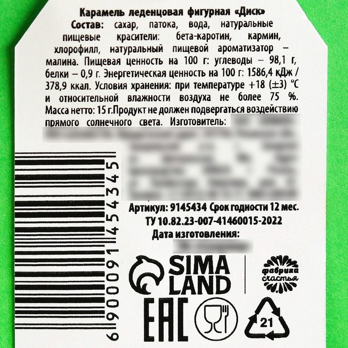 Состав: сахар, патока, вода, натуральные пищевые красители: бета-каротин, кармин, хлорофилл, натуральный пищевой ароматизатор – малина.