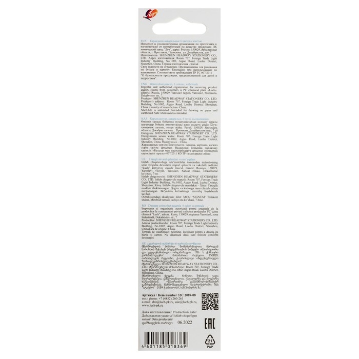 Карандаши акварельные 6 цветов, Луч "Классика", с кистью