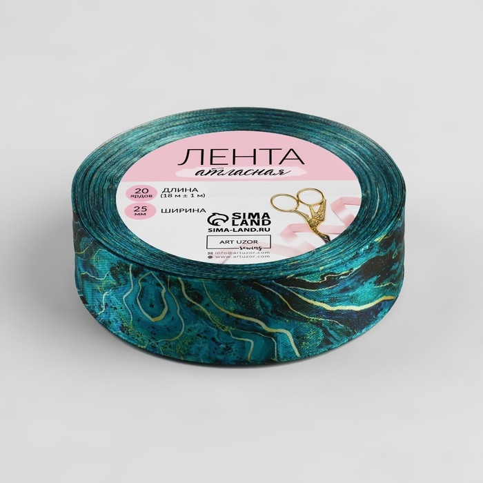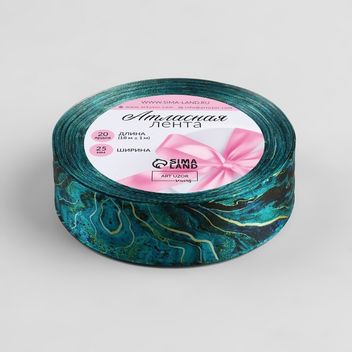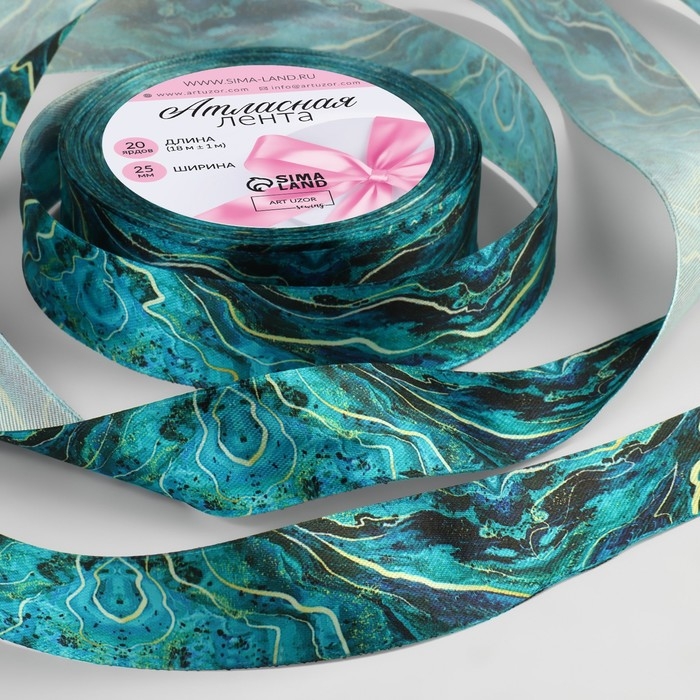 Лента атласная «Мрамор», 25 мм × 18 ± 1 м, цвет зелёный