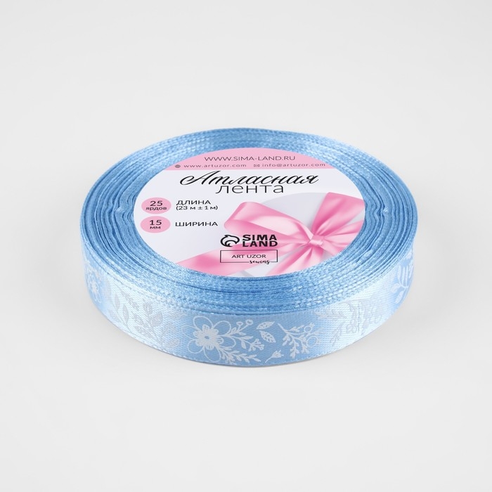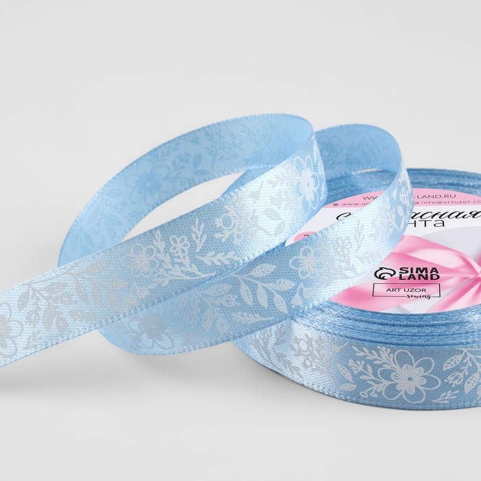 Лента атласная «Цветочки», 15 мм × 23 ± 1 м, цвет голубой №187