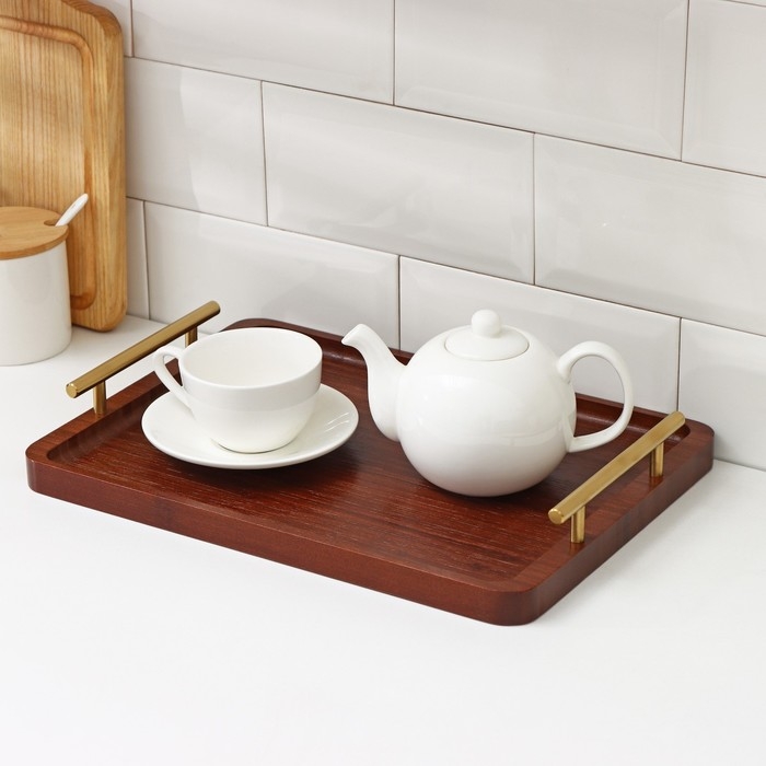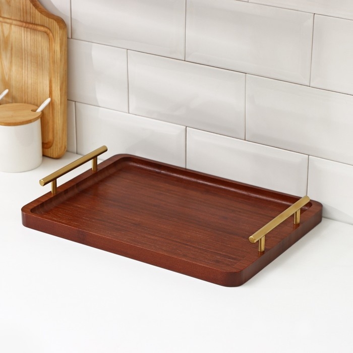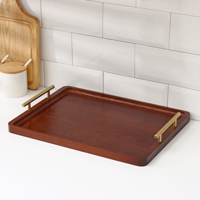 Поднос с ручками Доляна Striata, 40×28×4,5 см, бамбук