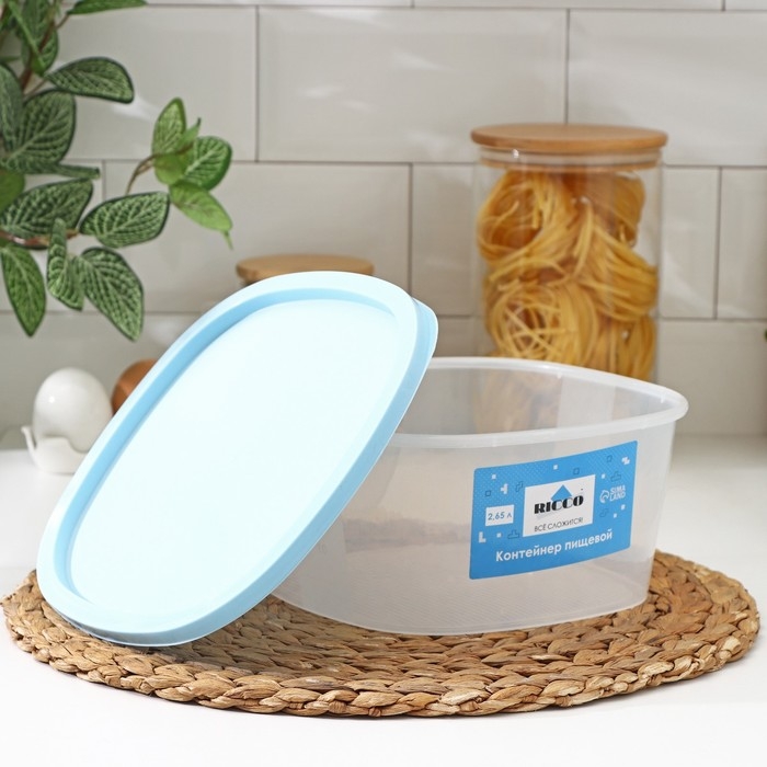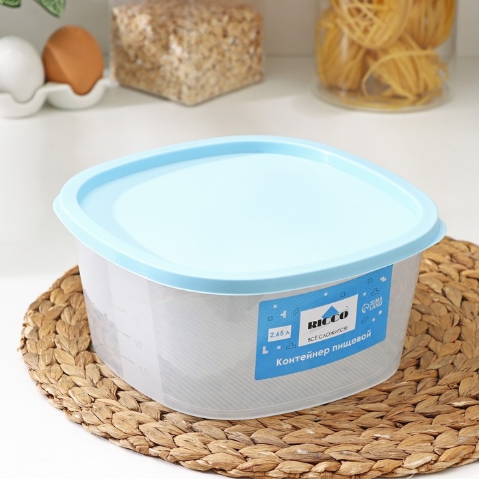 Контейнер пищевой RICCO, 2,65 л, 21,5×21,5×10 см, квадрат, цвет прозрачный, крышка голубая