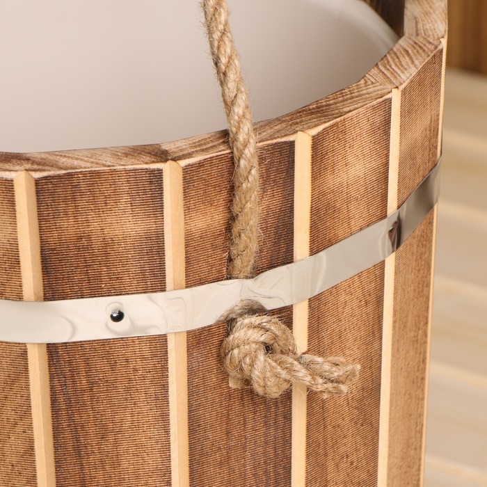 Ведро-запарник из липы, 10 л, пластиковая вставка, ручка-веревка