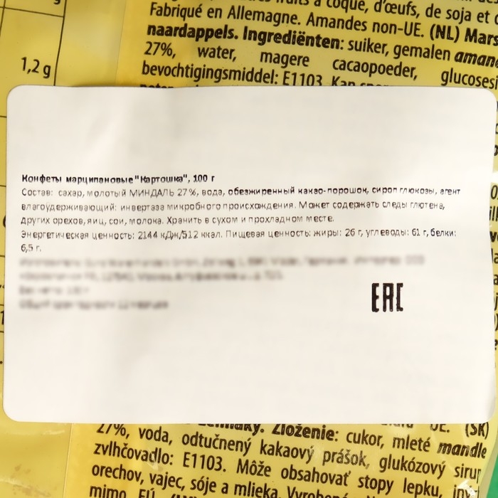 Картошка марципановая - это традиционное европейское лакомство, приготовленное из отборного миндаля и сахарной пудры. Оно сформовано в виде миниатюрных клубней картофеля и припудрено сверху небольшим количеством темного какао-порошка. Марципан 50/50 имеет плотную, но мягкую консистенцию, насыщенный миндальный аромат и чистый ореховый вкус. Цельные орехи проходят минимальную переработку, поэтому марципановые продукты сохраняют всю пользу натурального миндаля и считаются одними из самых полезных десертов или сладостей к чаю.