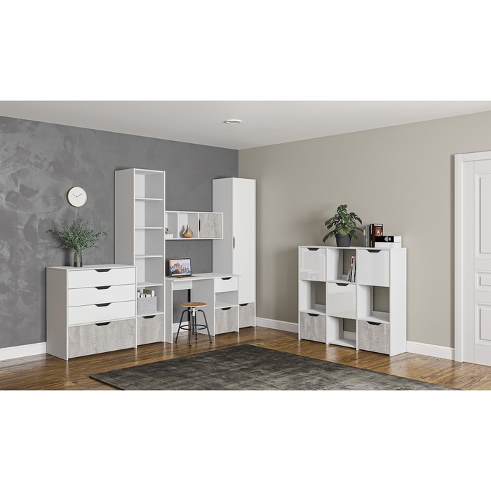 Стеллаж Мико 3 секции 1290х320х1150 белый/бриллиант/Бетон