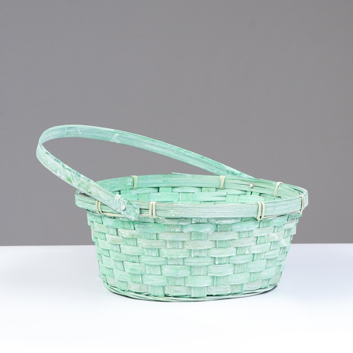 Корзина плетеная, 26х12/30 см, зеленый, бамбук