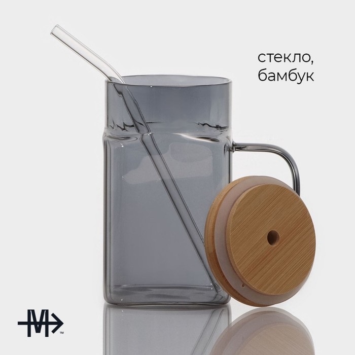 Банка стеклянная с ручкой, крышкой и трубочкой Magistro «Эко», 620 мл, цвет чёрный