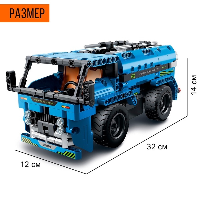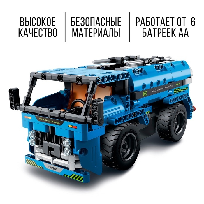 Конструктор на пульте управления «Спецтехника», 2 варианта сборки: автокран, грузовик, радиоуправление, на батарейках, 401 деталь