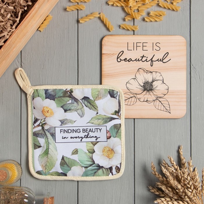 Набор кухонный Доляна Camelia: прихватка, подставка под горячее