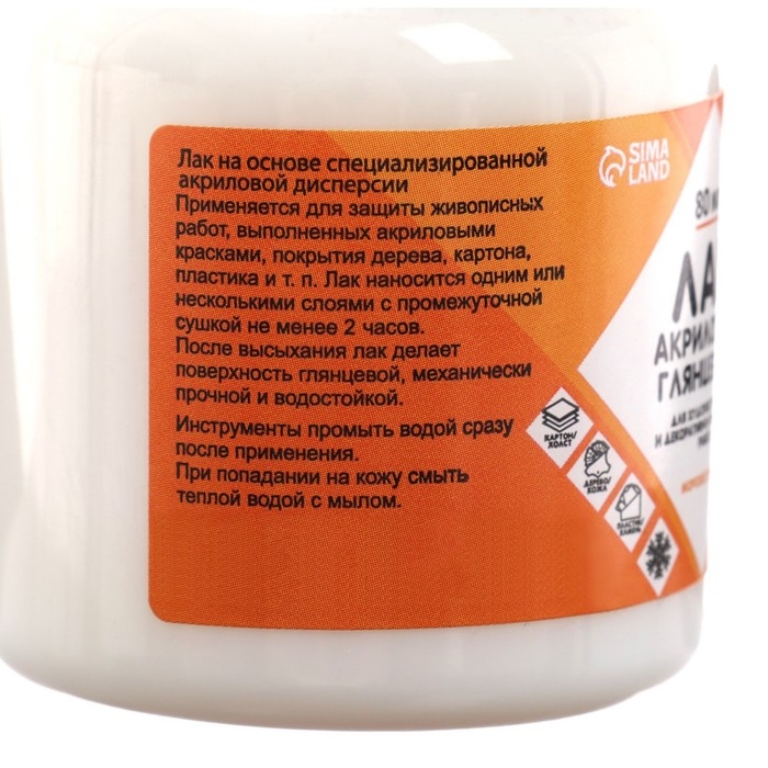 Акриловый лак применяется для защиты живописных работ, которые выполнены акриловыми красками, на дереве, картоне пластике и т.п. Лак наносится одним или несколькими слоями с промежуточной сушкой не менее 2-х часов.