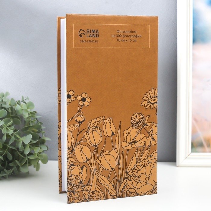 Фотоальбом на 300 фото 10х15 см "Полевые цветы" крафт 33,5х17,5х5 см