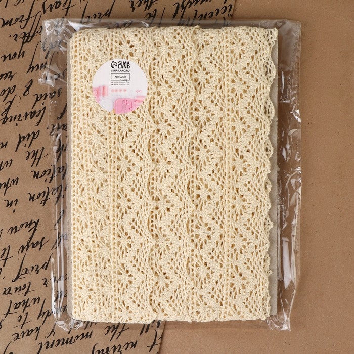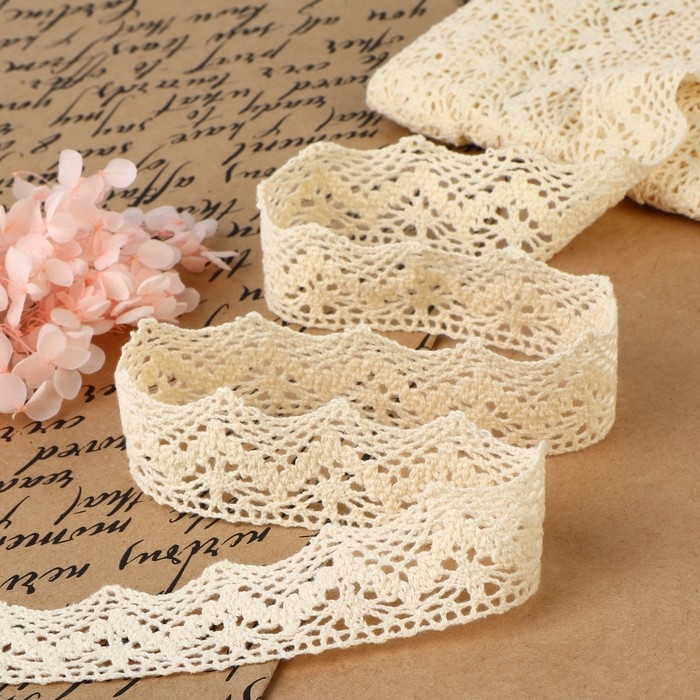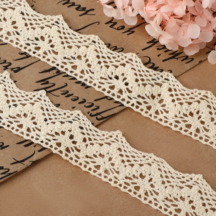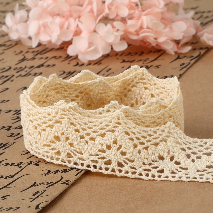 Кружево вязаное, 32 мм × 10 ± 1 м, цвет бежевый