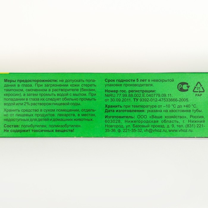 Состав: полибутилен, полиизобутилен. Не содержит токсического вещества.