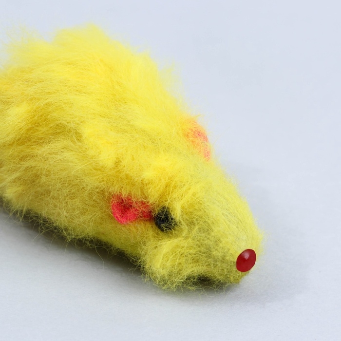 Мышь меховая "Пушистик" с перьями 7,5 см, микс цветов