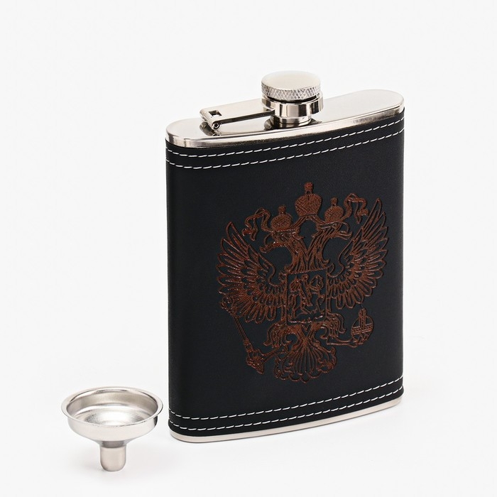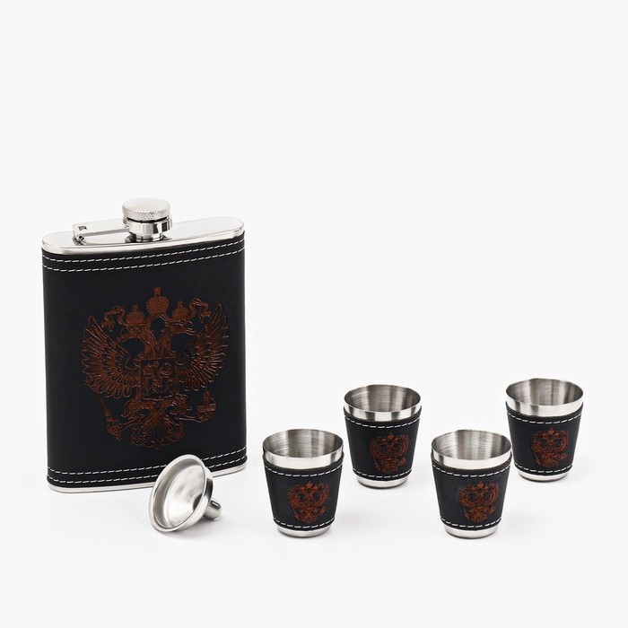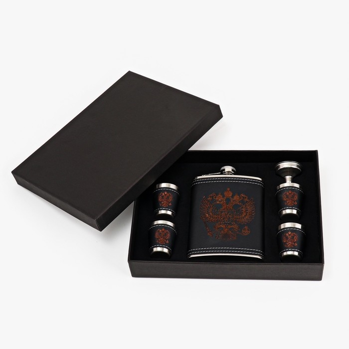 Подарочный набор "Герб РФ" 6 в 1: фляжка 240 мл, 4 стопки по 30 мл, воронка