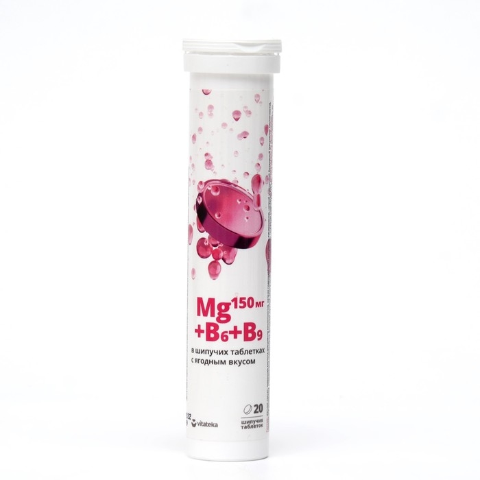 Магний B6+B9 Витатека со вкусом ягодный микс, шипучие таблетки 20 шт