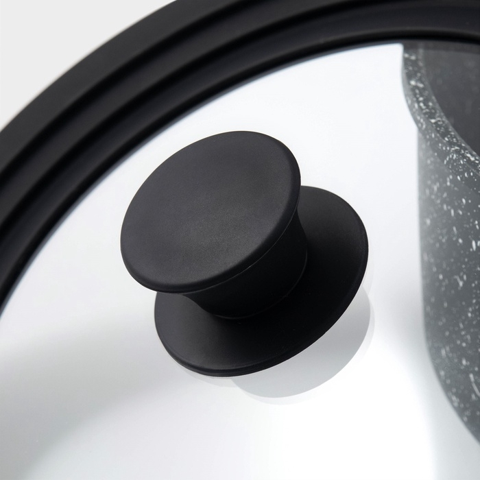 Крышка стеклянная для сковороды и кастрюли Доляна, универсальная с силиконовым, ободком и ручкой, 24/26/28 см, цвет чёрный