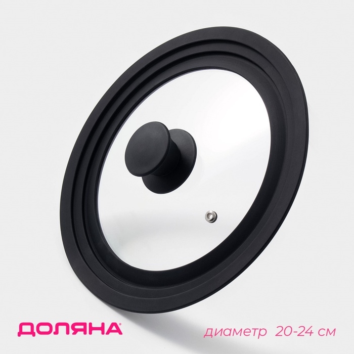 Крышка стеклянная для сковороды и кастрюли Доляна, универсальная, с силиконовым ободком и ручкой, d=20/22/24 см, цвет чёрный