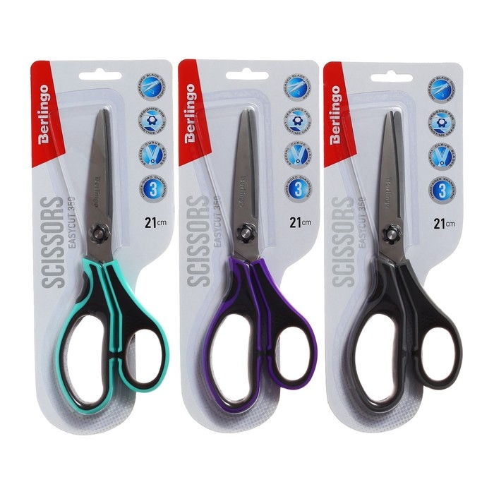Ножницы 21см Berlingo "Easycut 350" ассорти, эргономичные ручки, мягкие вставки, европодвес