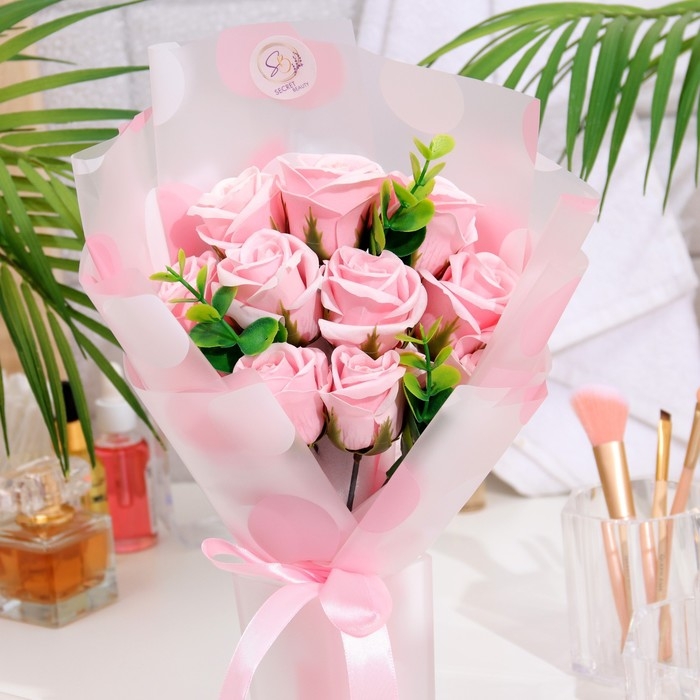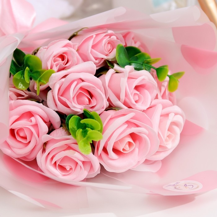 Благодаря точному повторению мелких деталей мыльные розы схожи с настоящими цветами. Композиция наполняет помещение тонким и ненавязчивым цветочным ароматом.