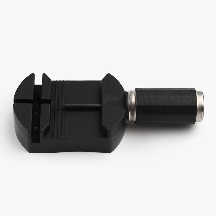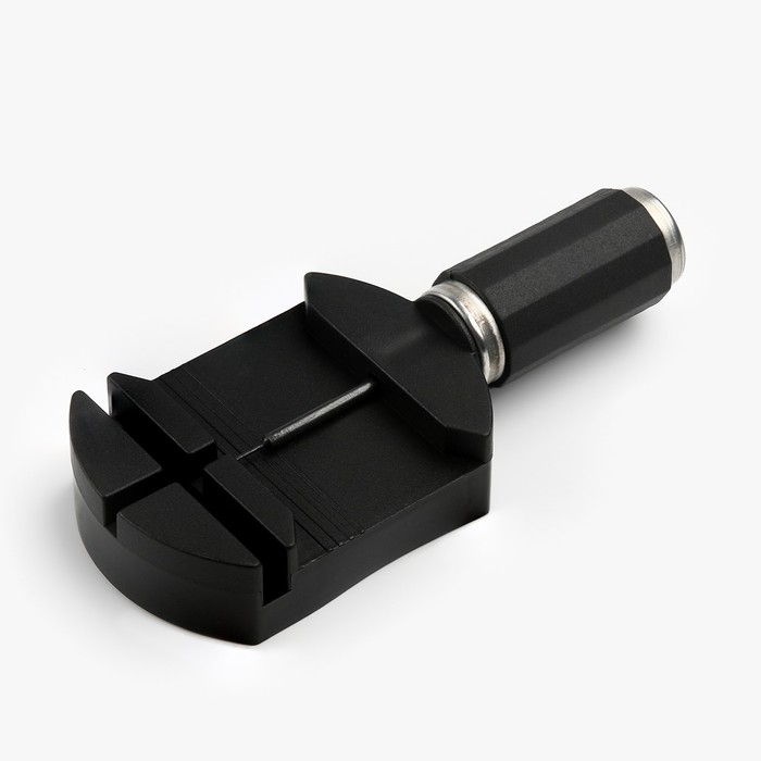 Данный инструмент позволяет регулировать браслеты различной ширины. Конструкция максимально проста и удобна, ширина рабочей зоны регулируется под запросы пользователя. С помощью этого инструмента можно с легкостью отделить лишние звенья металлических браслетов, чтобы скорректировать длину по индивидуальным размерам, укоротить длину ремешка. Воспользовавшись инструментом для снятия звеньев браслета часов, вы сэкономите время и деньги на поход в часовую мастерскую. Вся процедура займет не более 10 минут. Положите браслет от ваших часов в выемку съемника, так чтобы звено ремешка было напротив штифта, а обратная сторона звена выходила в специальное отверстие на приборе и начните медленно закручивать винт, выкрутите винт полностью, после чего воспользовавшись пассатижами аккуратно вытащите штифт, далее закрутите винт обратно в инструмент для укорачивания браслета.