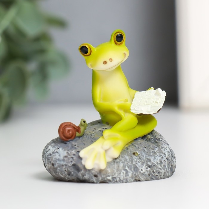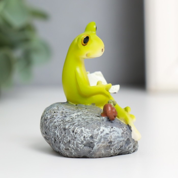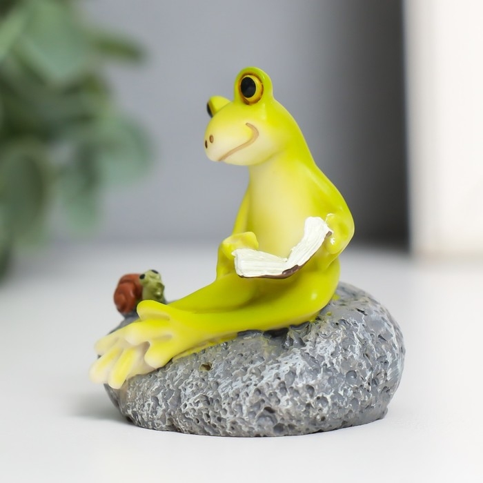 Сувенир полистоун "Лягушонок на камне с улиткой - чтение" 5,2х5х5,7 см