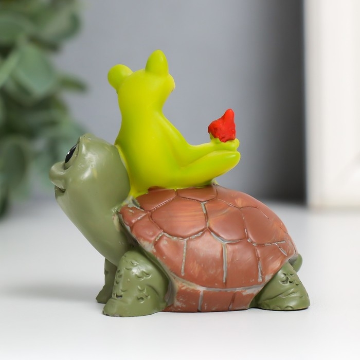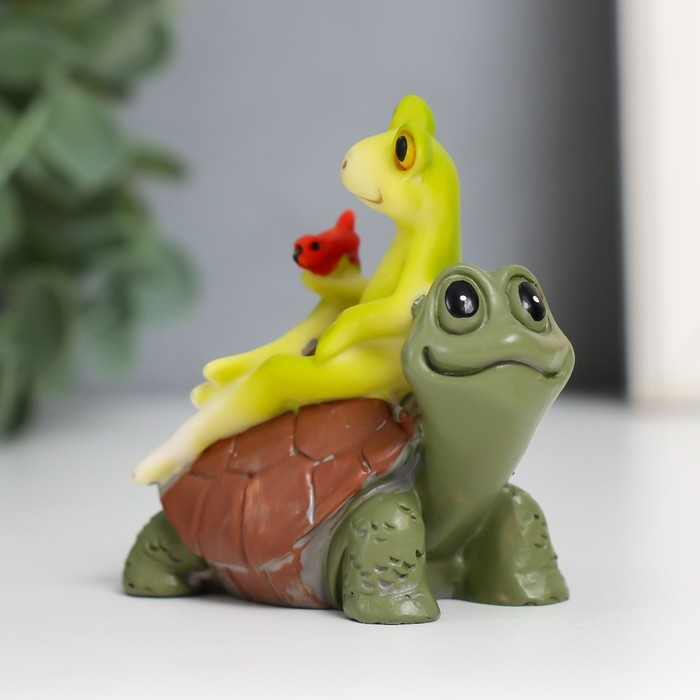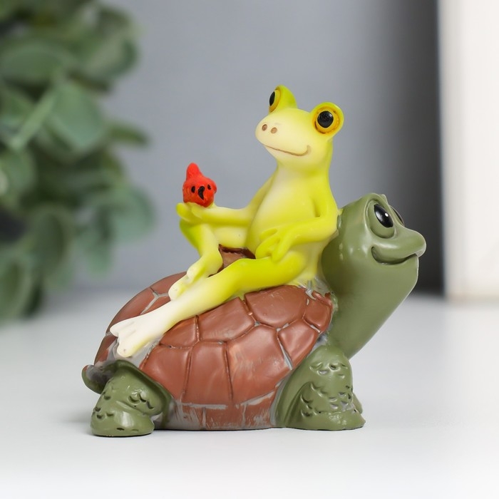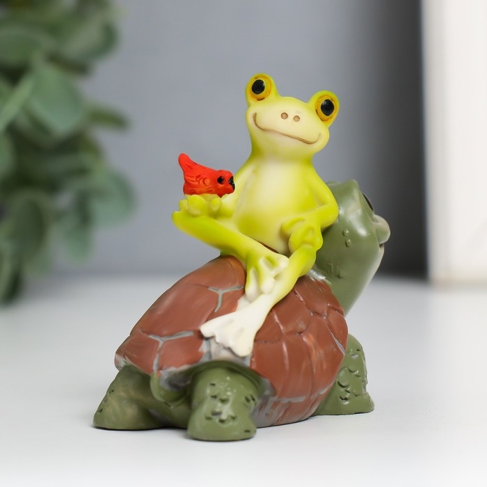 Сувенир полистоун "Лягушонок с птичкой на черепахе" 6,5х6,7х3,9 см
