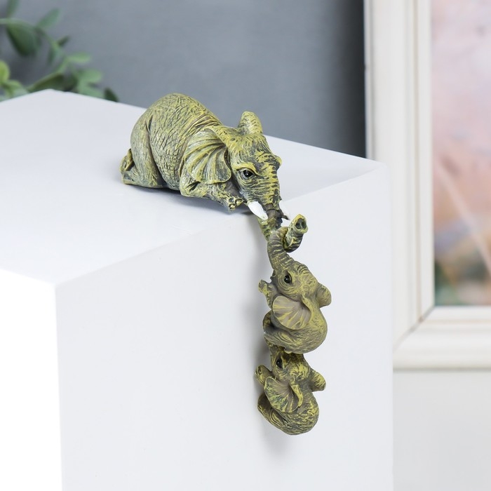 Сувенир полистоун "Слониха с двумя слонятами - подъём" 10х3,8х4 см