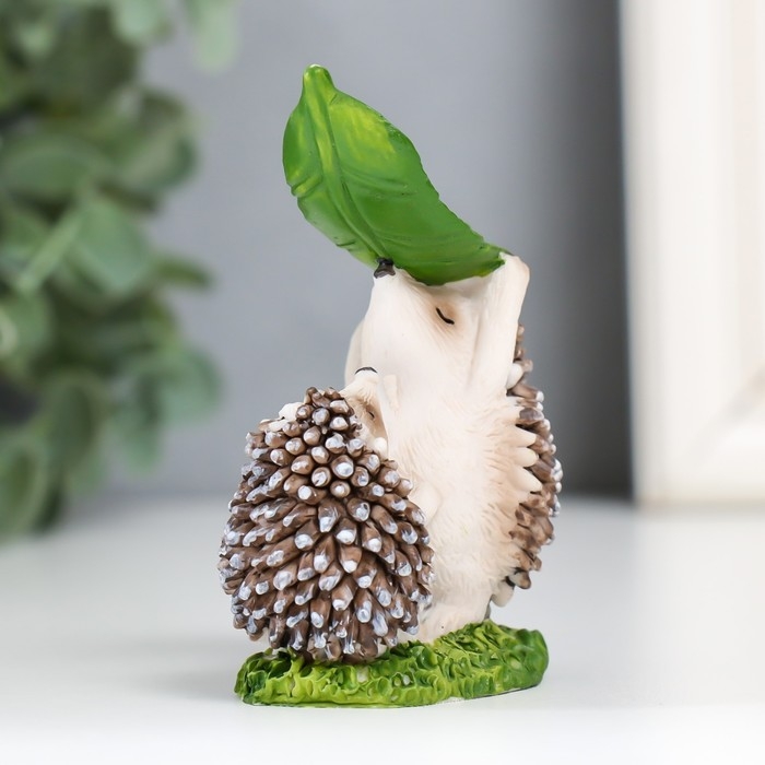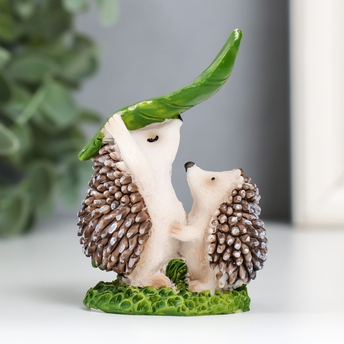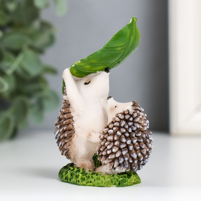 Сувенир полистоун "Ежиха с ежонком под листиком" 7,8х5,3х3,4 см
