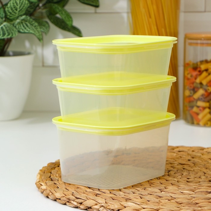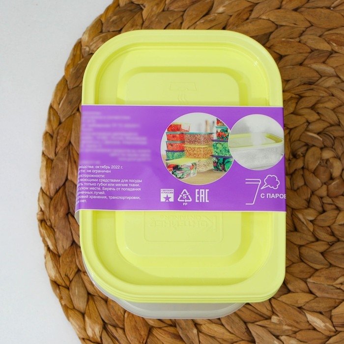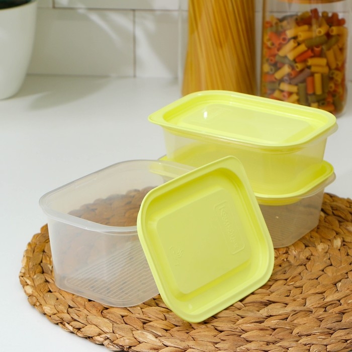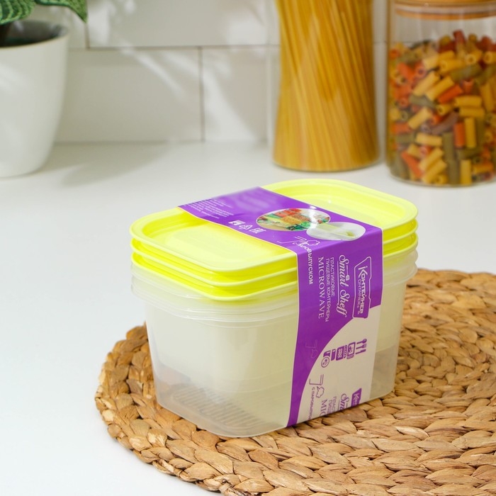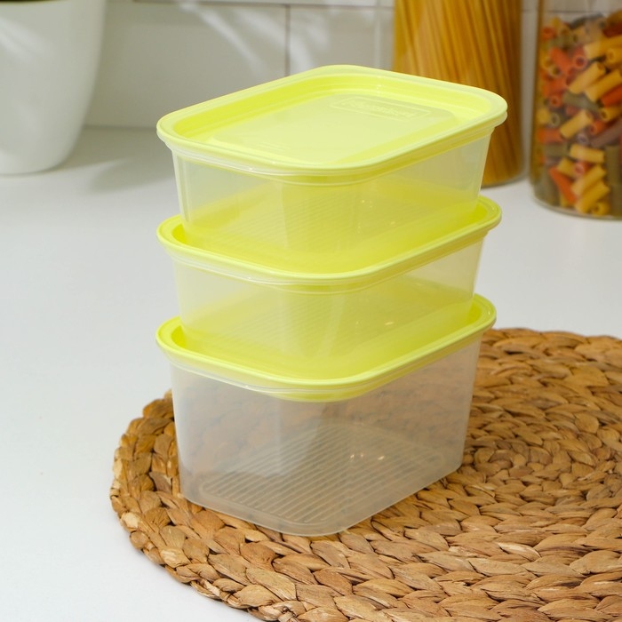 Набор контейнеров пищевых с паровыпуском, 3 шт: 750 мл, 500 мл, 500 мл, прямоугольные, цвет микс