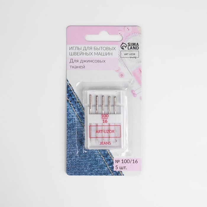 Иглы для бытовых швейных машин, для джинсовых тканей, №100/16, 5 шт